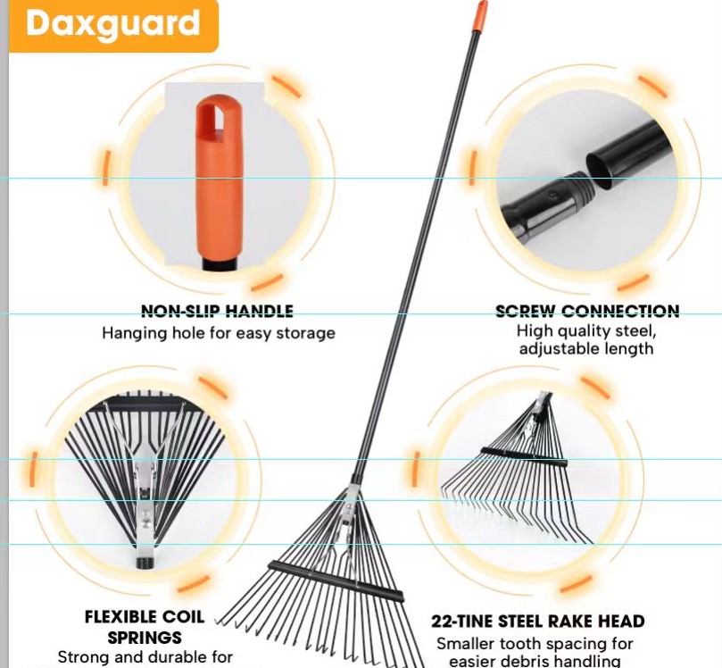 22 TINES GARDEN LEAF RAKE WITH 3 SECTION STEEL HANDLE